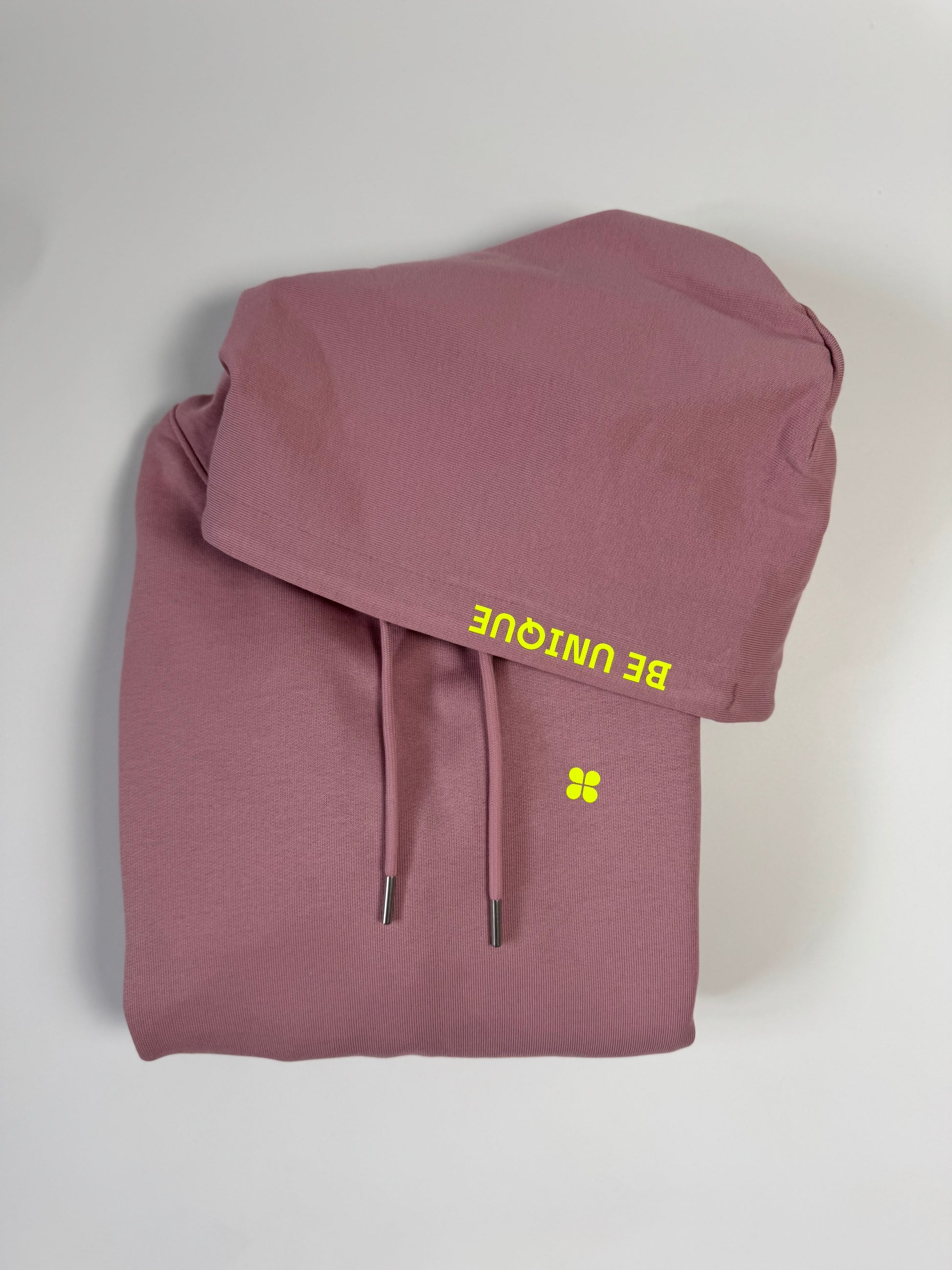 Hoodie Unisex 'Be unique.': Rosalila / Neon Gelb