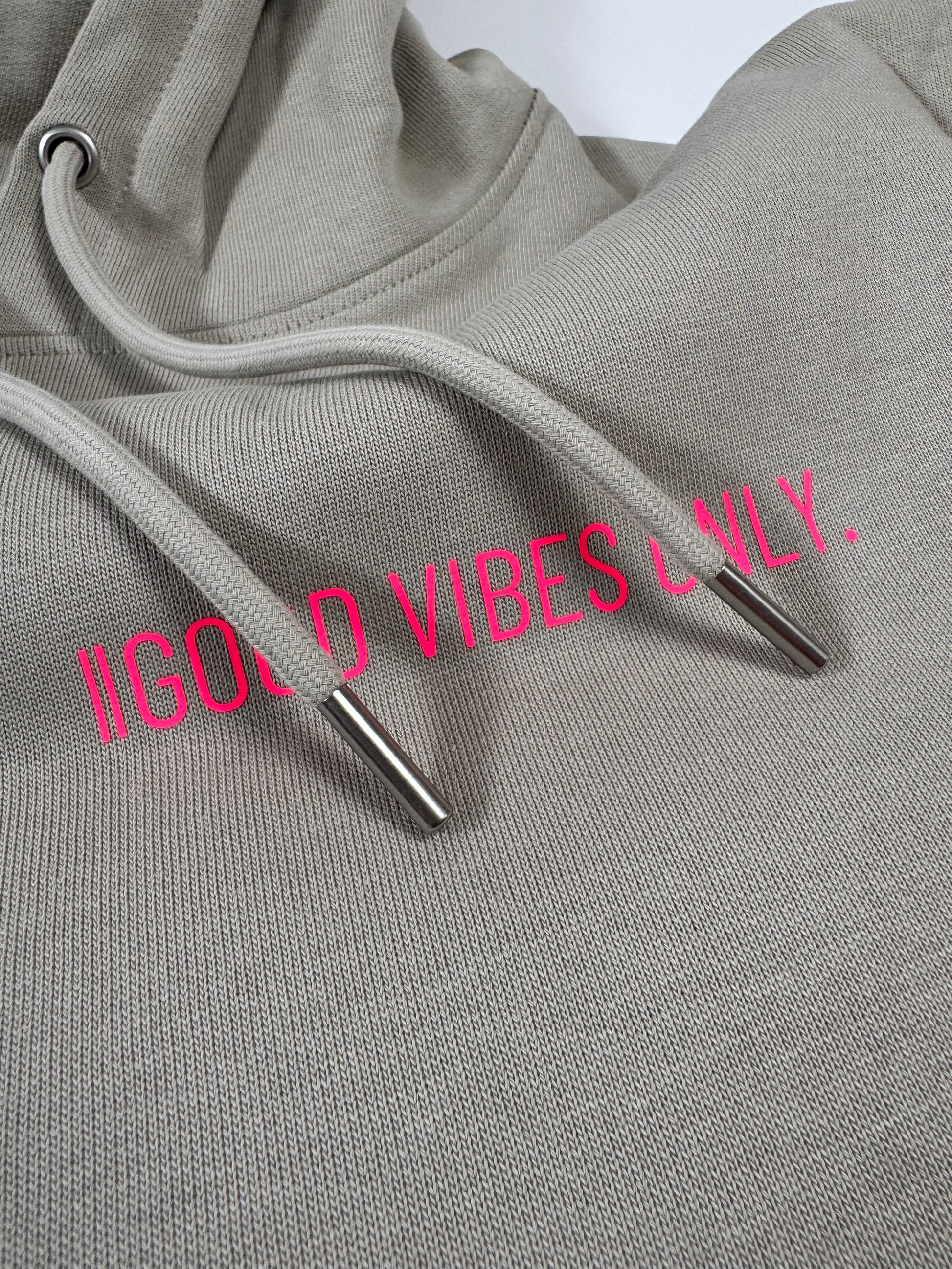 Hoodie Unisex 'Good Vibes Only.': Stone / Neon Pink