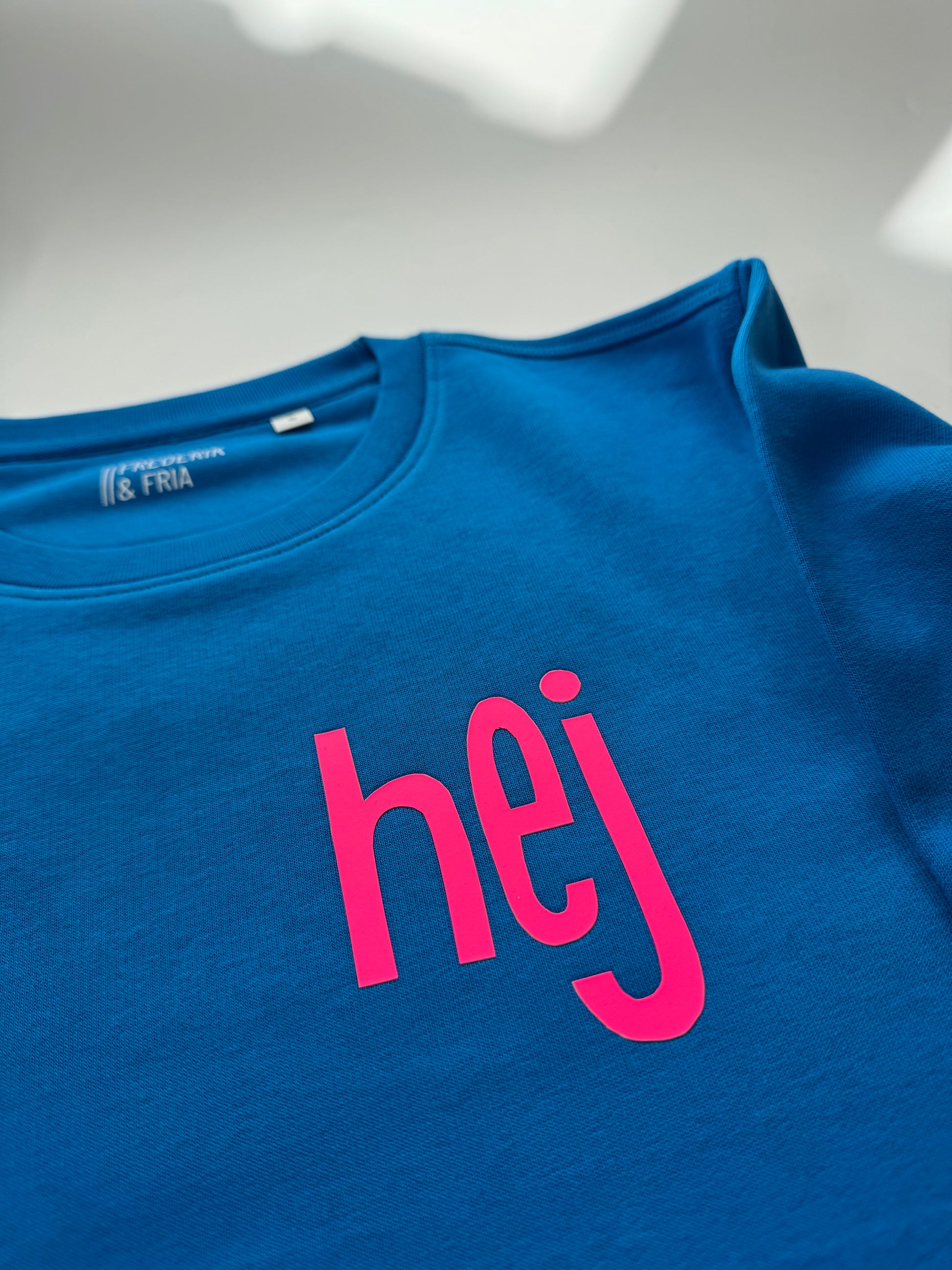 Sweatshirt Unisex 'hej': Pazifik Blau / Neon Pink