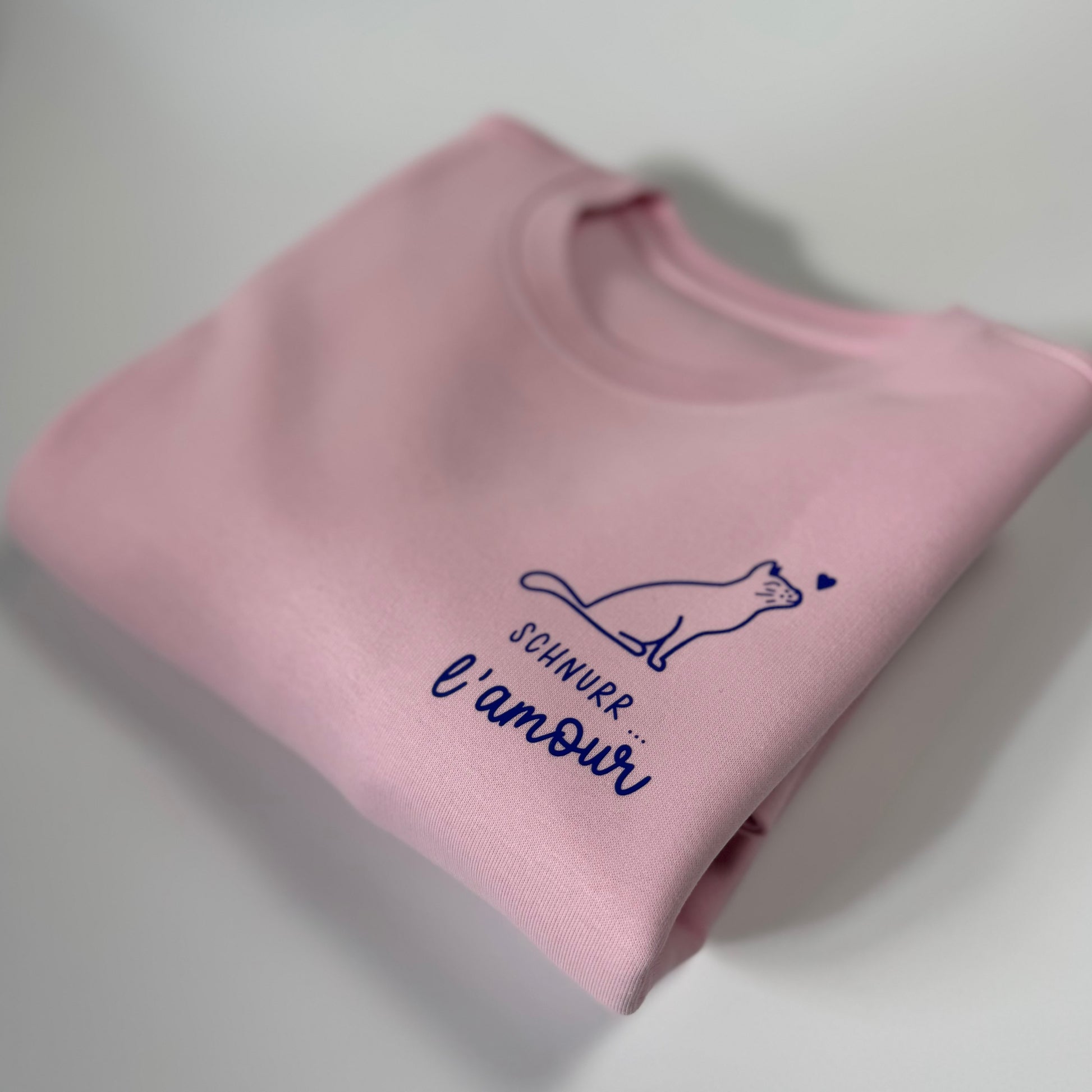 Sweatshirt Unisex Katze Schnurr l‘amour (B), Rosa / Blau