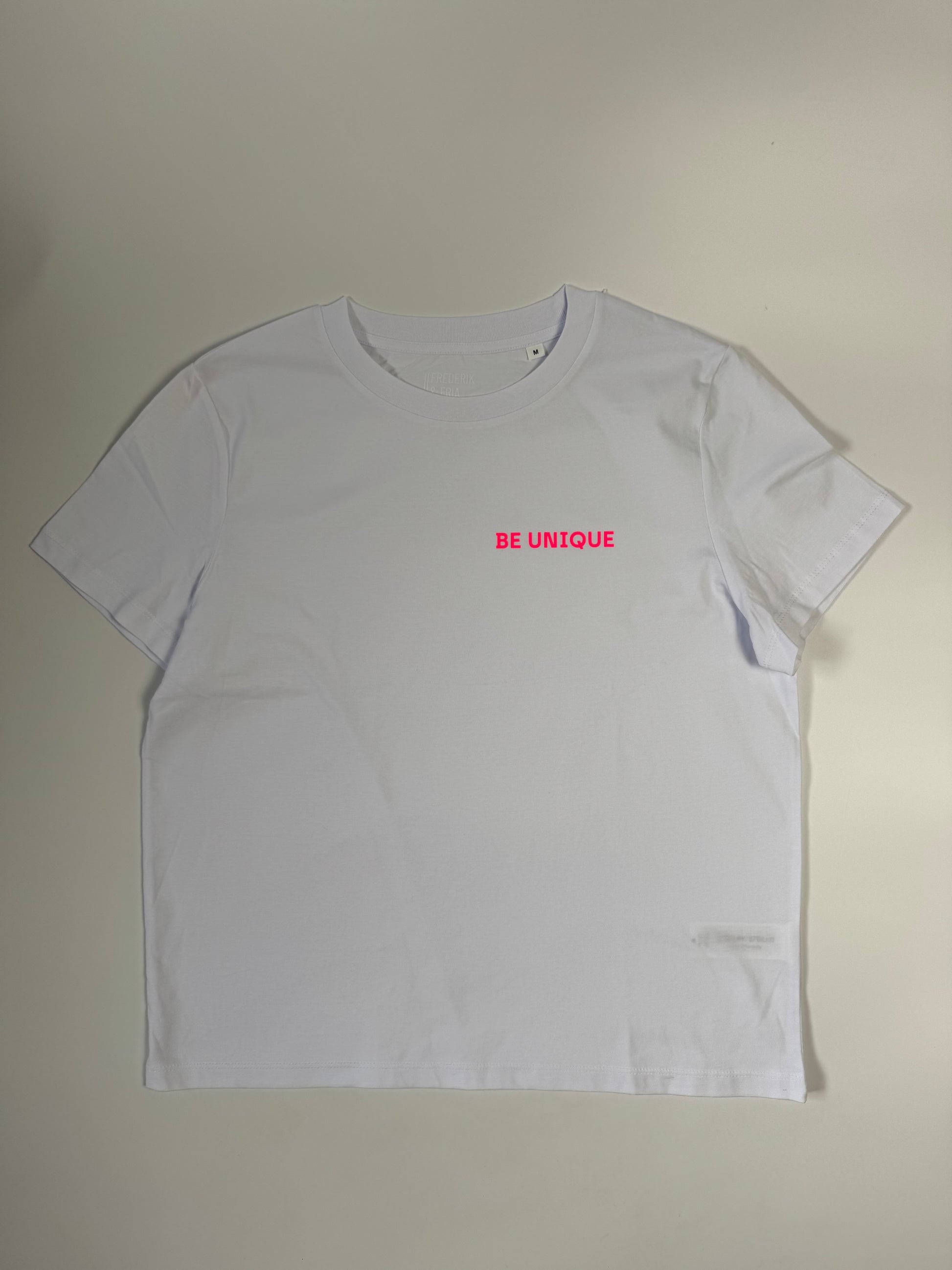 T-Shirt Frauen ‚Be unique’, Weiß / Neon Pink