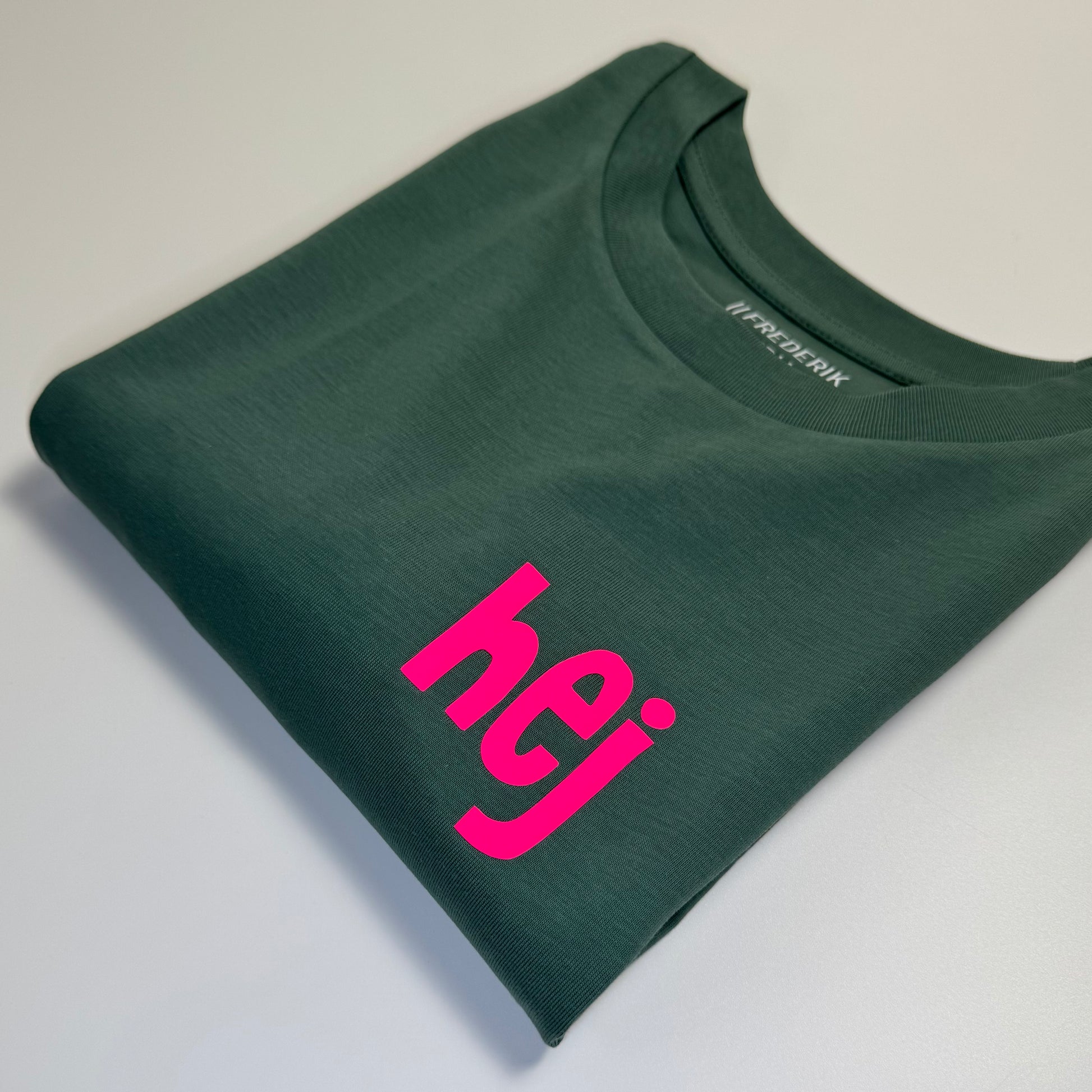 T-Shirt Frauen ‚hej.': Grün / Neon Pink