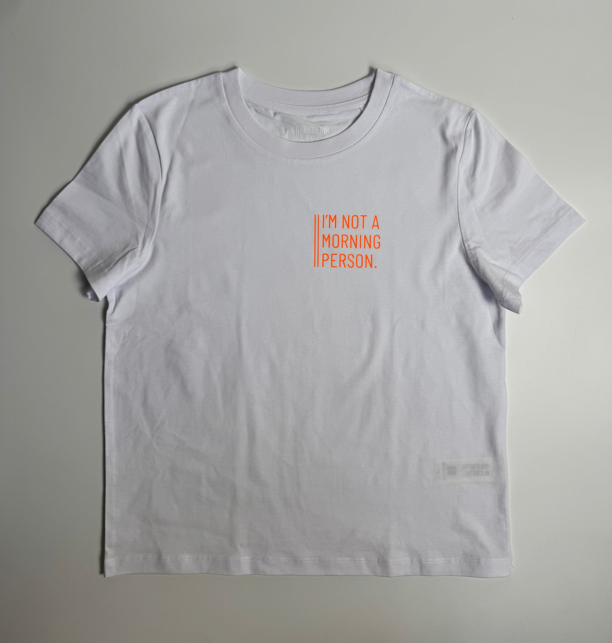 T-Shirt, Frauen, ‚I‘m not a morning person.‘, Weiß / Neon Orange