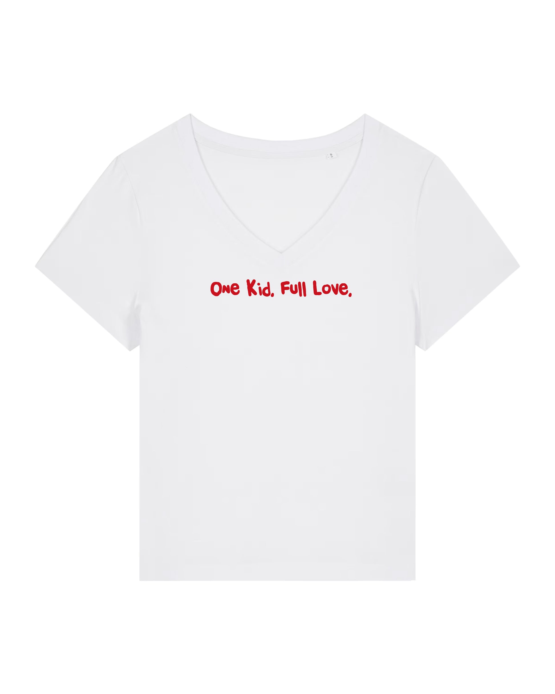 T-Shirt Frauen, V-Ausschnitt, Frau Zauberschön, Weiß / Rot