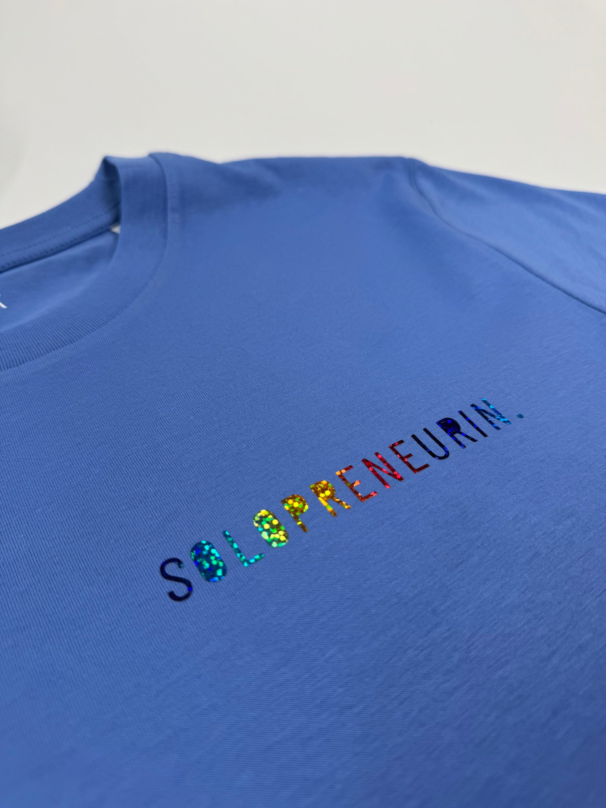 T-Shirt Unisex, ‚Solopreneurin’, Blau / Regenbogen